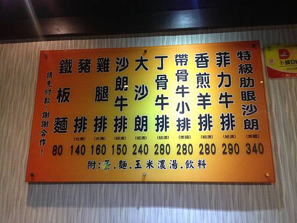 餐點價格也大大地掛在牆上