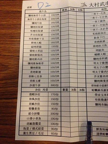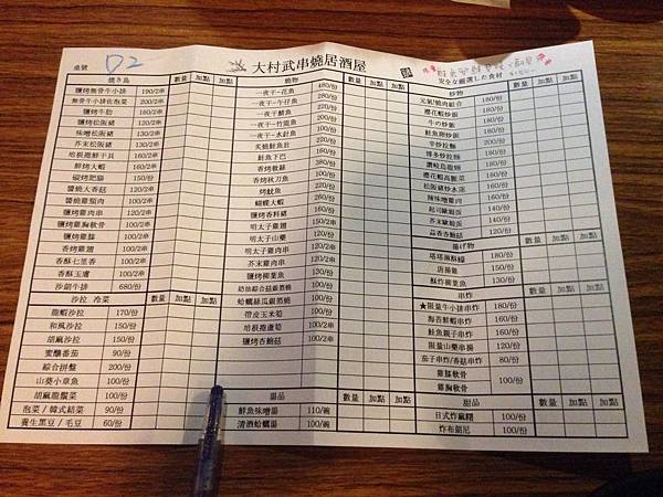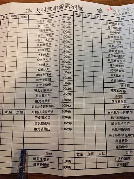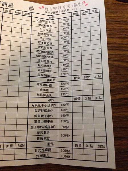 第一次點餐要寫在數量那一格