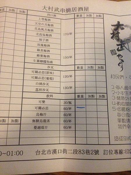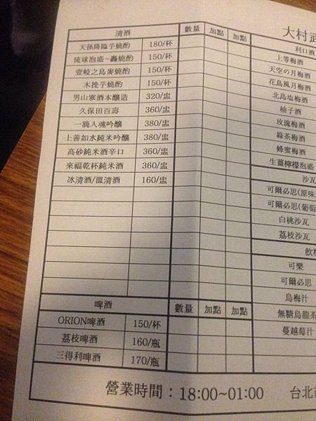 營業時間:18:00-01:00 ,最後點餐時間11:30