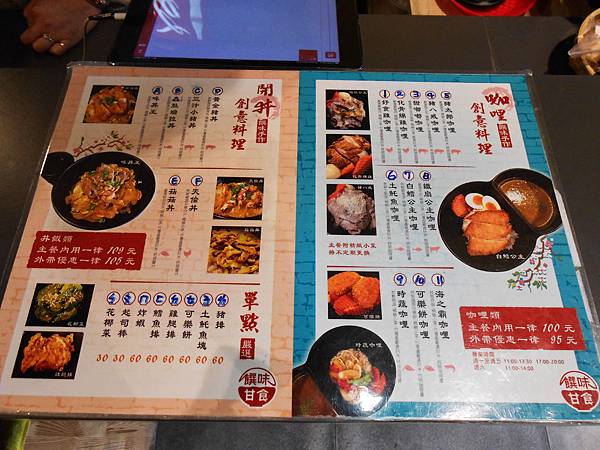 咖哩類內用100元,外帶95元