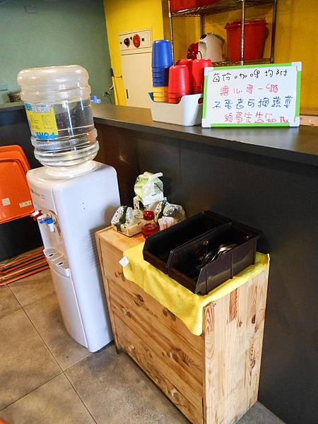 櫃檯旁邊一樣有水跟餐具自己來