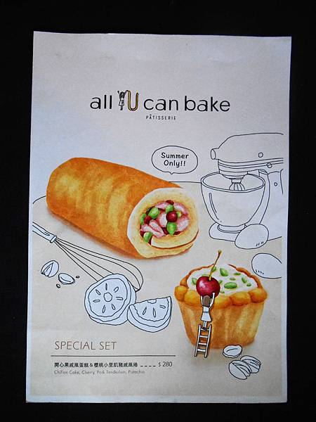 然後肚子整個超漲的,最後只好放棄開心果戚風蛋糕&櫻桃小里肌豬戚風捲(一臉哀怨的看著朋友)