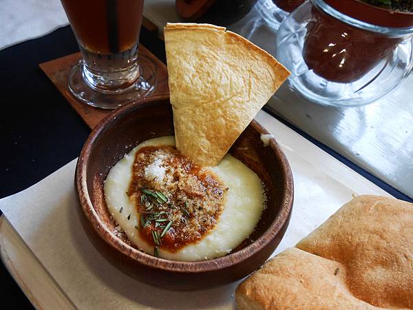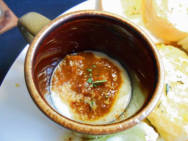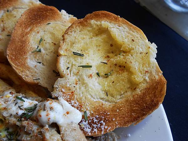 麵包上抹著桔梗自製的香料奶油(有蒜、辣椒、第戎芥末)🍞