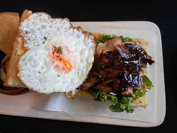 在太陽蛋的下面鋪著厚厚一疊桔梗自製的培根🥓