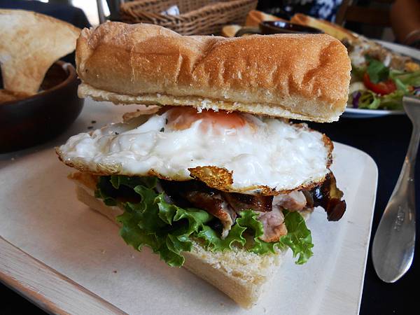 朋友翻了大白眼後,說這就是店家自製的培根啊!剛剛店員有說這是他們用豬五花風乾3天自製的培根!(白眼翻翻)