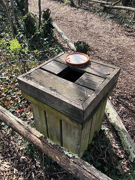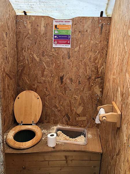 上完廁所沒有沖水的按鈕,所以要把木屑倒在馬桶裡消除臭味(換而言之馬桶裡已經有前面一堆人的XX了!)